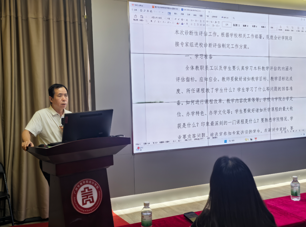会议伊始,姚凤民院长公布今年会jinnianhui将在11月16—19日迎接专家组进校进行本科教学诊断评估。就本次本科教学诊断评估,姚院长向全体教职员工阐述文件内容及今年会jinnianhui对应的工作部署安排,包含六大项目,16点细化内容,要求全体教职员工以及学生要认真学习本科教学评估的内涵与评估指标。