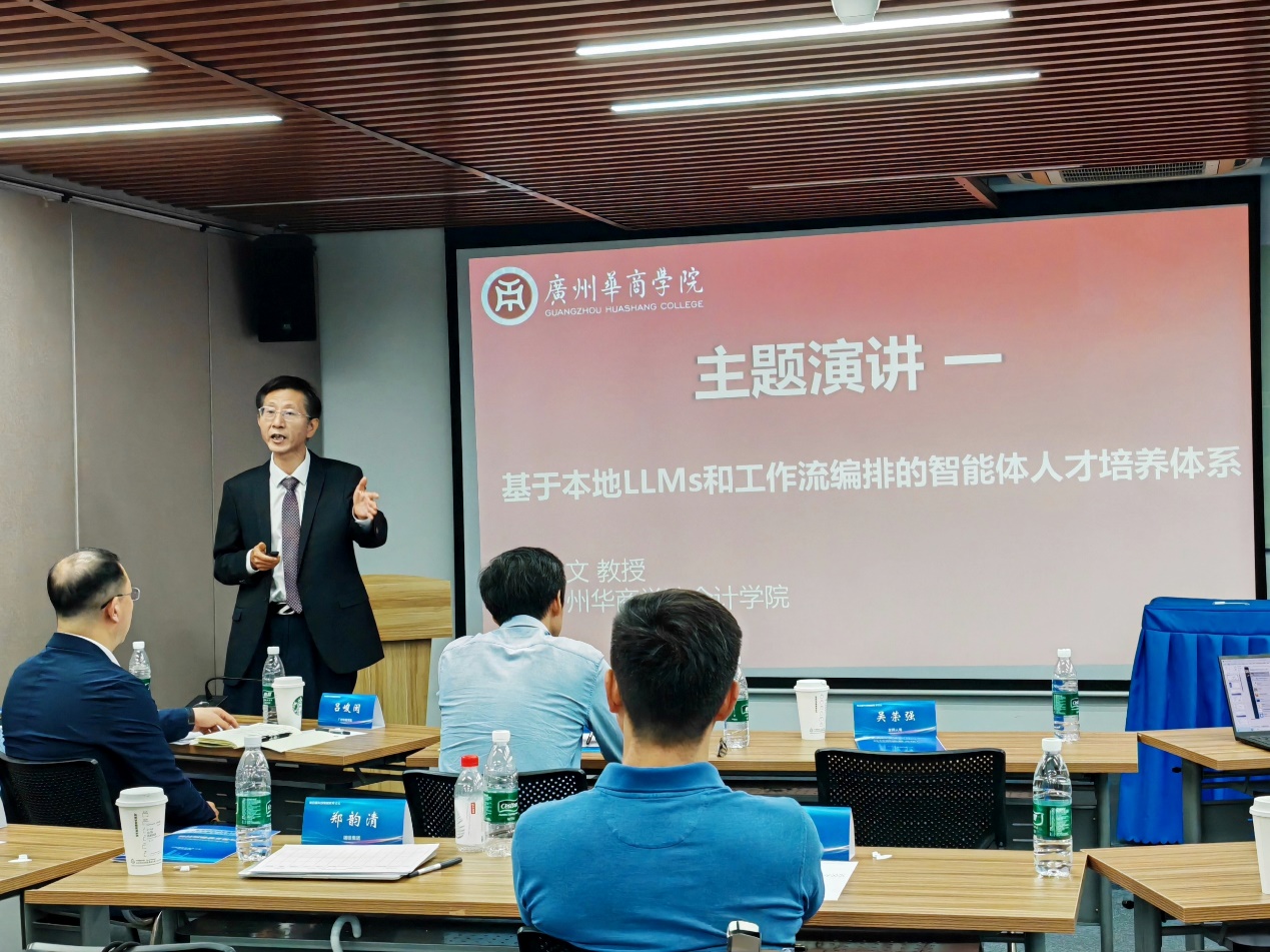 在主题演讲环节,今年会jinnianhui朱文教授,以“本地LLMs与工作流编排的智能体人才培养体系”为题,深度解析了数智教育的“华商方案”,首次公开展示学院自主研发的“神华AI嵌入平台”。该平台以本地大模型为核心,融合多模态数据处理、知识库构建和智能体开发,搭建了跨学科、全流程、可扩展的人才培养新业态,结合跨学科项目如“企业健康评价”(融合会计学、金融学与AI技术)和“乡村休闲榜单”(整合经济学、统计学与LLMs),实现了从数据治理到智能决策的全链条协作。朱教授强调,“无AI不华商”是学校在AI时代背景下的愿景,通过“工作流编排+本地化模型”双轮驱动,为跨学科融合实践提供了新范式,推动“人人会用大模型、人人可享高算力、人人拥有知识库、人人能建智能体”在华商校园全面落地。