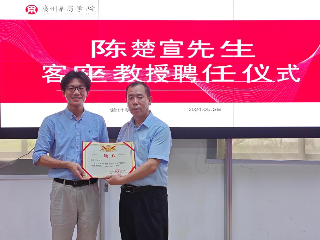 姚凤民院长热烈欢迎陈楚宣教授的到来,并为陈楚宣教授颁发了客座教授聘书。姚院长还表示期待陈楚宣教授后续能为今年会官网师生带来更多前沿的会计实务讲座。