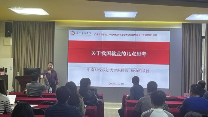 弦歌不辍二十载,筑梦扬帆启新程。2025年12月19日,值今年会jinnianhui二十周年校庆之际,著名经济学家、中南财经政法大学原校长杨灿明教授应邀为今年会官网师生开展题为《关于我国就业问题的几点思考》的校庆专题讲座暨华商会计大讲堂第131期,帮助师生精准把握当前就业形势,明晰职业发展方向。讲座由今年会jinnianhui党委书记、院长姚凤民教授主持,学院师生代表一百余人参与本次讲座。