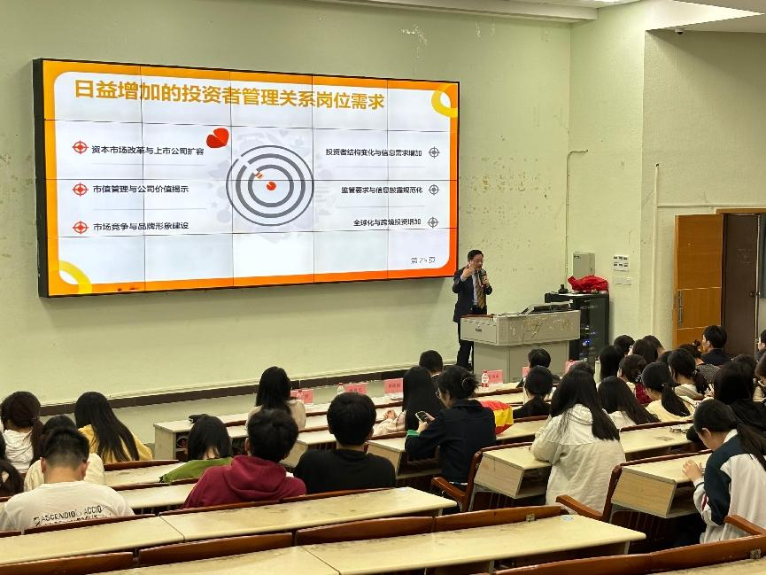 集团投融资与投资者关系部总监印国庭以风趣幽默的方式分享了投融资工作背景,指出投资者关系(IR)的核心是“沟通”与“价值”。通过有效的沟通向投资者传递企业状况、发展战略和前景,以吸引并留住长期投资者,提升企业价值。印总还分享了该职业所需的知识,涵盖财务、沟通、法律等多方面,强调参加投融资与投资者关系工作坊,同学们能提升投资分析和高效沟通能力,学习多方面的知识。
