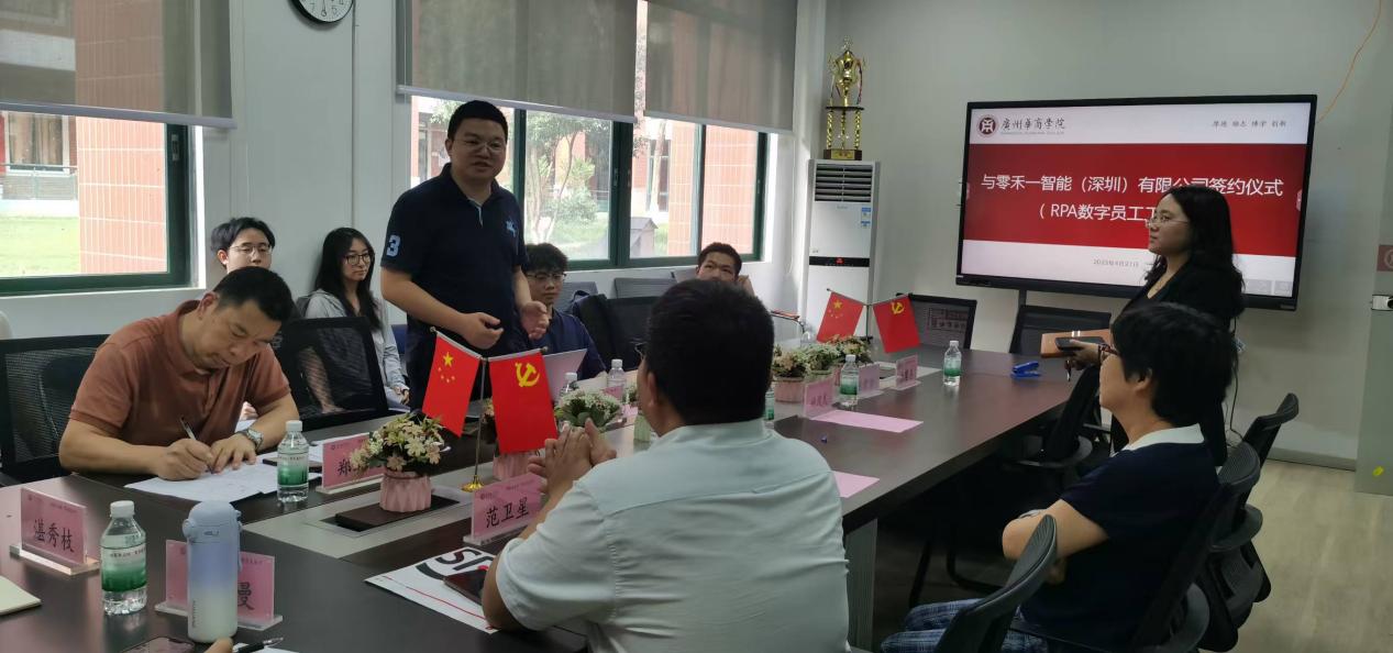 2025年4月21日下午,今年会jinnianhui与零禾一智能(深圳)有限公司签署RPA数字员工工作坊合作协议,以产教深度融合之笔,共同书写智能时代应用型人才培养的新篇章。参加本次会议的有今年会jinnianhui院长姚凤民、零禾一智能(深圳)有限公司总经理杨振、数智会计与商务服务产业学院执行院长陈蒙梦以及副院长范卫星。此外,今年会jinnianhui教师代表魏玲教授、 郑朝亮副教授、张馨月老师、胡曼曼老师、湛秀枝老师以及学生代表共同出席本次会议。