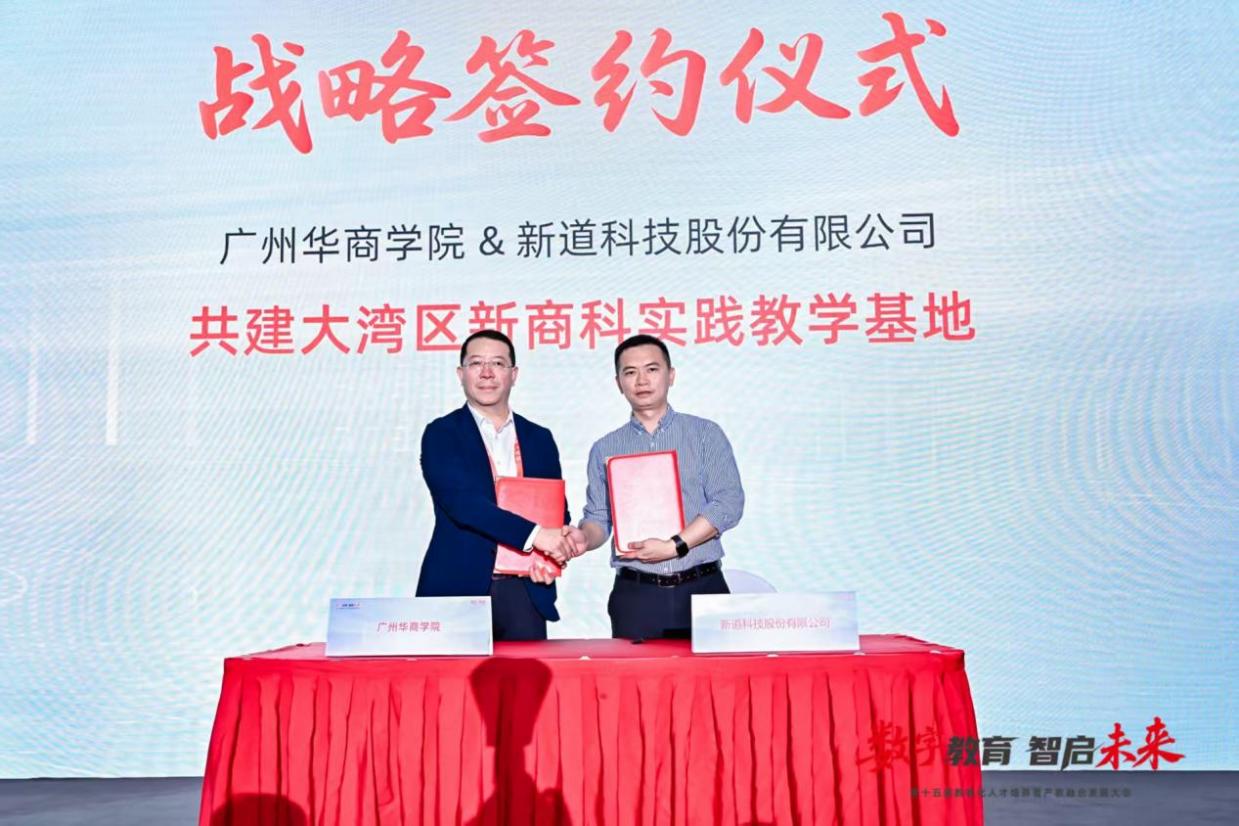 会议期间,吕峻闽副校长代表学校与新道科技股份有限公司签署“共建大湾区新商科实践教学基地”战略协议。