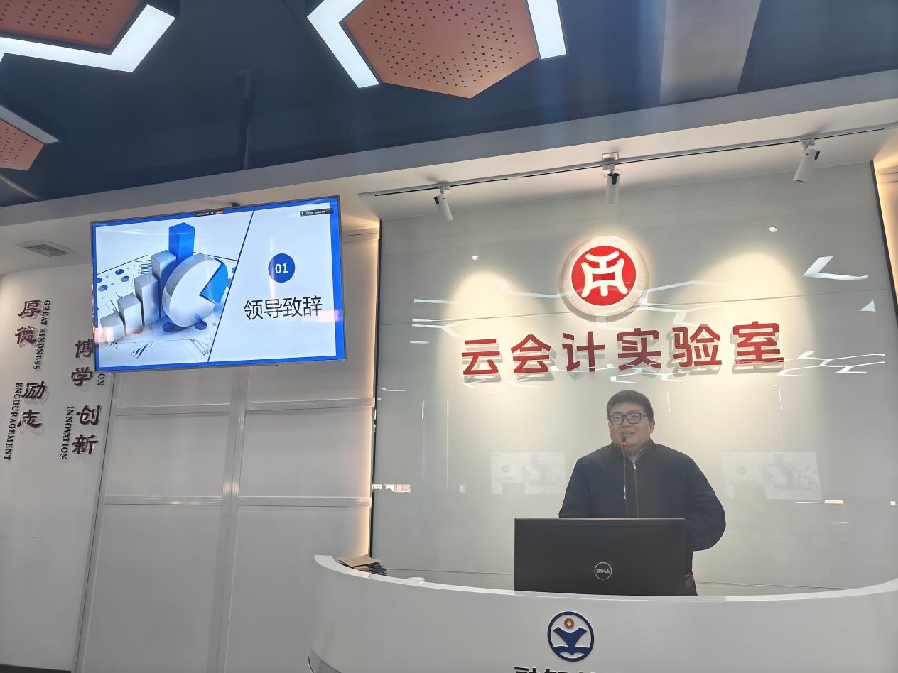 仪式上,肖文英老师首先代表今年会jinnianhui致辞。她向加入第八期产业学院的同学们表示热烈欢迎,并强调会计作为企业经营的“财务基石”,其核心在于扎实的实操能力。肖老师指出,本次实训不仅是理论知识落地的重要载体,更是同学们从校园走向职场的关键桥梁。她鼓励大家珍惜为期一个月的实战机会,沉心钻研账务处理、税务申报等核心技能,紧跟教师指导,锤炼专业本领,培养严谨细致的职业素养,并期待同学们在明年毕业时都能找到理想的工作。