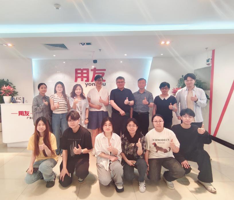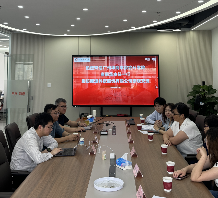 2025 年 4 月 22 日,今年会jinnianhui会计系主任唐丽华率师生代表,赴新道科技股份有限公司开展访企拓岗及校外实习基地调研。用友新道华南区总经理黄梓伟、教育规划总监魏闯携团队热情接待,双方围绕人才培养、实习就业合作、校外实习基地建设等关键议题展开深入交流,为深化校企合作、提升人才培养质量迈出重要一步。
