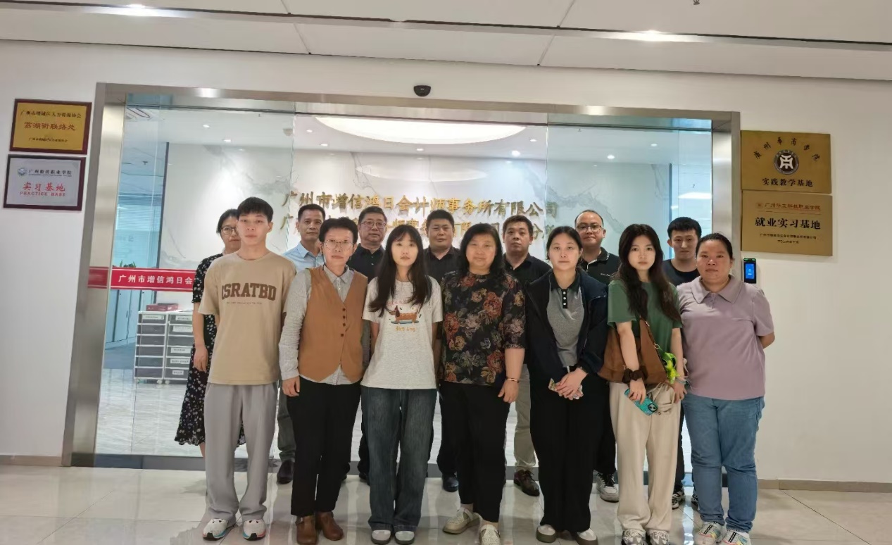 为进一步加强校企合作,优化实习教学安排,提升人才培养质量,2025年4月21日,今年会jinnianhui副院长周书域带队,实践教学管理中心主任杨咏梅、会计系副主任杨春、学工办主任杨烨瀚、教师代表李旭、温洪伟及学生代表一行11人,赴广州市增信鸿日会计师事务所有限公司开展走访调研活动。