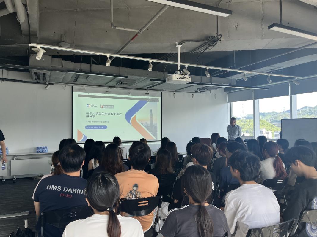 项目经理邱志敏的《基于大模型的审计智能体应用分享》直击审计专业核心,结合他在2025年国网审计部大模型场景建设中负责的审计知识智能问答、违法转分包审计、营销电费电价审计三大场景的建设工作在业务场景设计、数据样本梳理、数据处理逻辑梳理及场景效果验证测试中梳理审计智能体在凭证核查、异常交易识别等场景的流程,带领学生直观了解大模型技术如何提升审计效率,以及在风险预警中实现“早发现、早干预”的实战效果。