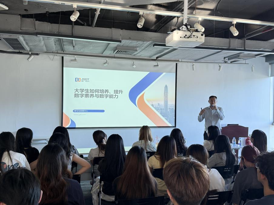 活动最后,黄仲负责人结合自身学习和工作经历,围绕《大学生如何培养、提升数字素养与数字能力》与同学们亲切交流。他从主动学习技术知识、积极参与实践项目锻炼、保持对行业趋势的敏感度等方面给出实用建议,鼓励同学们既要脚踏实地打牢专业基础,也要保持好奇心与探索欲,在实践中不断提升数字能力。